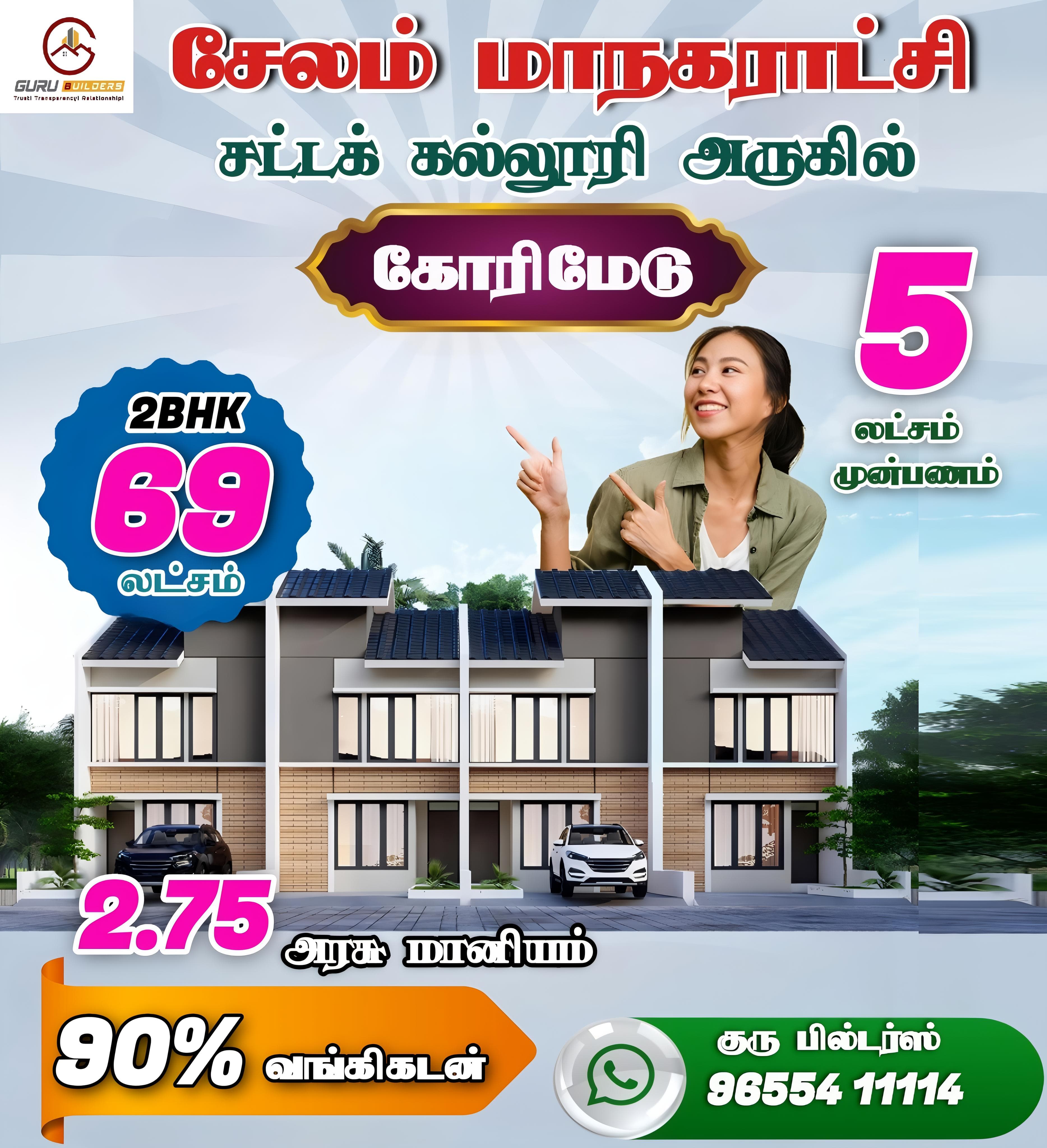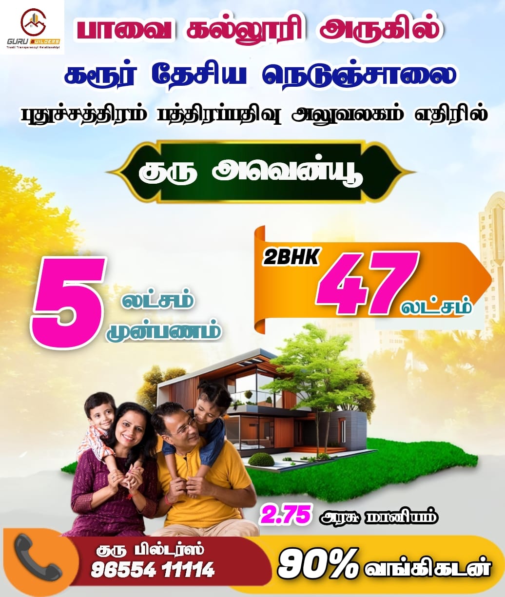 உங்களது இடத்தில் உங்களது பட்ஜெட்டில் வாஸ்துபடி சிறந்த தரத்துடன் அழகிய வீடுகள் கட்டி தரப்படும். 80% வங்கி கடன் வசதி*